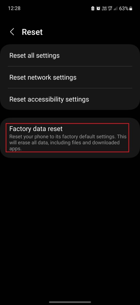 バグが誤検出によるものであり、上記の方法があなたを助けていないことを確信している場合、工場のリセットが最後のオプションです。ただし、リセットを実行する前にすべてのデータのバックアップを取得する必要があります。これにより、携帯電話のすべてのデータが消去され、設定と変化を工場出荷時のデフォルト値にリセットする必要があります。これらの手順に従って、Samsung Galaxyスマートフォンで工場出荷時のリセットを実行します。