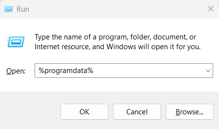 6。を押しますキーを入力しますを開くプログラムデータWindows 11 PCまたはラップトップのフォルダー。
