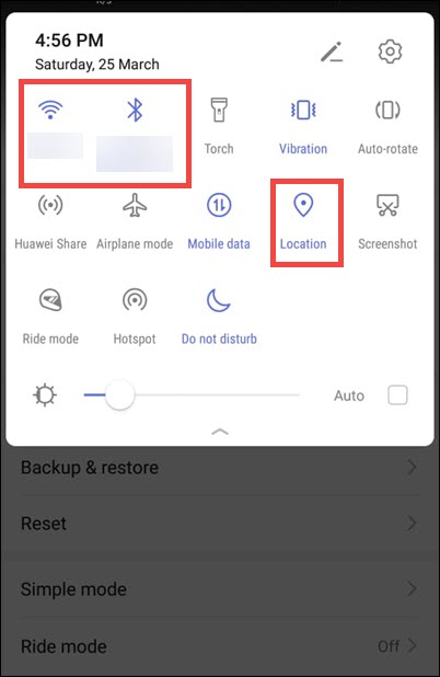 3. Bluetooth、Wi-Fi、および場所を有効にします