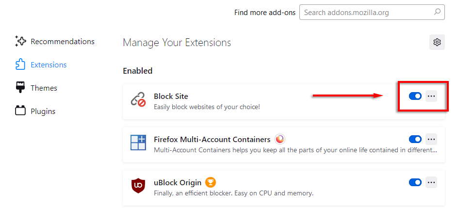Netflixの問題を引き起こす可能性のあるもう1つのことは、ブラウザの拡張機能またはアドオンです。これがすべてのアドオンを無効にすることで問題であるかどうかを確認し、Netflixをロードしようとするときに1つずつ許可します。