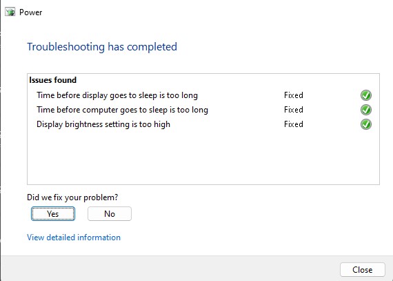 このトラブルシューターを実行すると、問題があるため、コンピューターをスキャンし、自動的に修正してみます。パワートラブルシューターが問題を解決できない場合、追加のトラブルシューティング手順が提供されます。