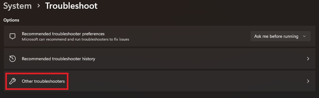 3。をクリックしますその他のトラブルシューターオプション。