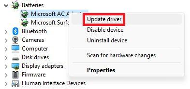 時代遅れまたは破損したバッテリードライバーは、Windows 11でバッテリーなしエラーを検出する可能性もあります。この問題の簡単な修正は、バッテリードライバーの更新です。バッテリードライバーを更新すると、ラップトップに最新のソフトウェアを提供してバッテリーと通信します。これにより、検出エラーも解決できます。