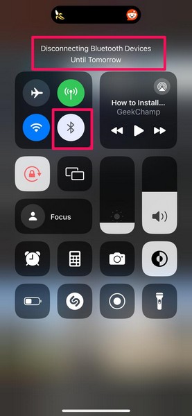 ステレオスピーカーからオーディオを聞こうとしているときにiPhoneがワイヤレスオーディオデバイスに接続されていることがわかった場合は、タップします。Bluetoothボタンコントロールセンターで今後24時間、すべてのBluetoothデバイスを切断します。