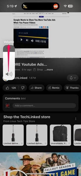 1. YouTubeアプリでiPhoneのボリュームが高/最大に設定されていることを確認してください