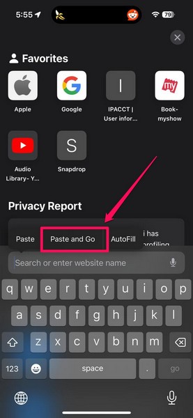 今、Safariブラウザを開きますまたはiPhoneの他のブラウザアプリ、タップして保持しますURLバーで、ヒットします貼り付けて行きますオプション。