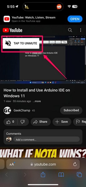 YouTubeアプリを使用してiPhoneでビデオを再生している場合は、デバイスのメディアボリュームレベルを上げてミュートするだけです。一方、ブラウザアプリを使用してiOSデバイスでYouTubeビデオを再生している場合、タップをタップしてビデオプレーヤーの[ミュート]ボタンをタップして、YouTubeをミュートしません。