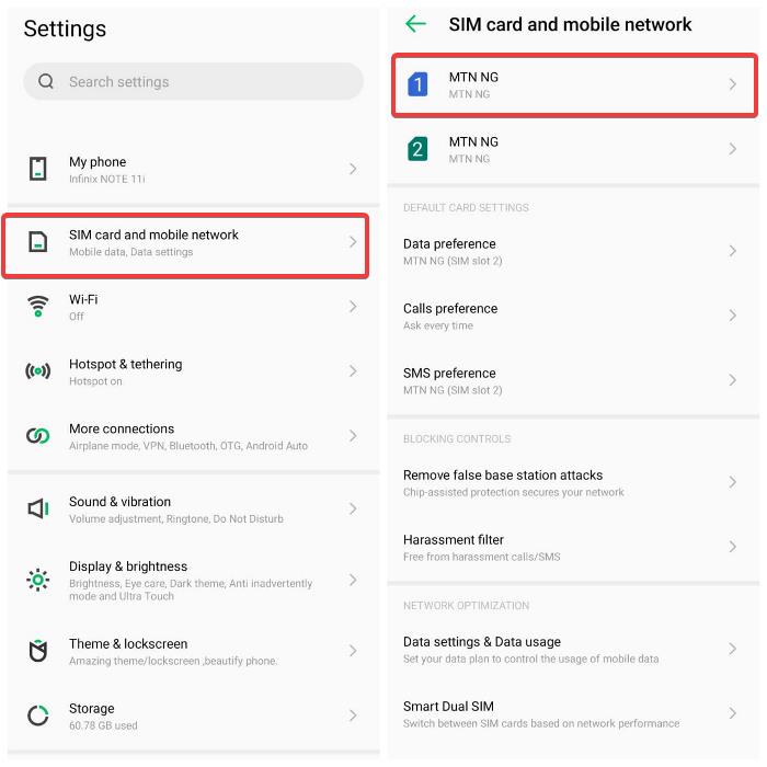 1。行きます設定on電話とタップをタップしますSIMカードとモバイルネットワーク。