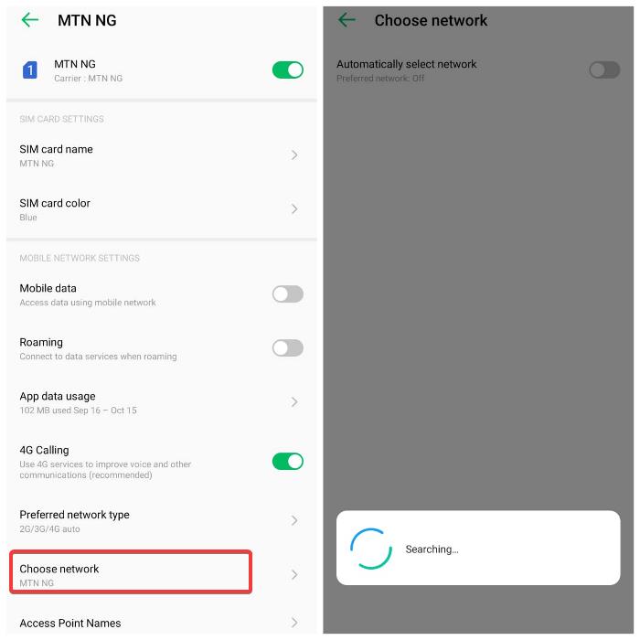 3。消すネットワークを自動的に選択しますネットワークキャリアがロードするのを待ちます。その後、ネットワークを選択して携帯電話を再起動します。