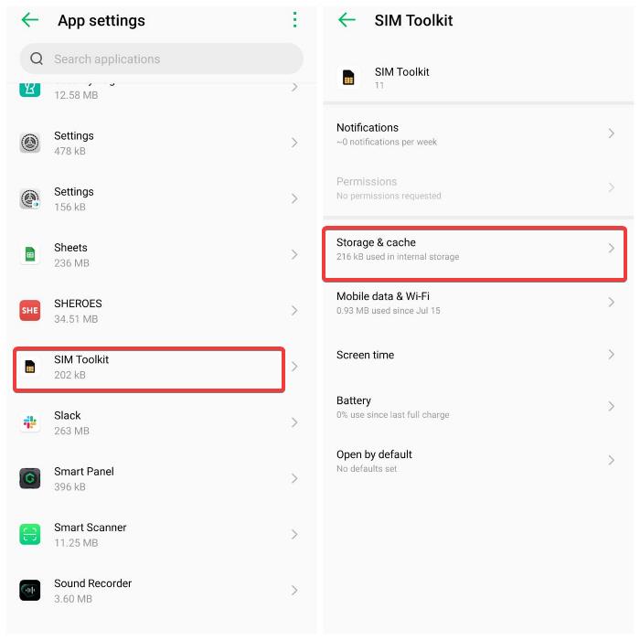 5。ここで、SIMツールキットのデータとキャッシュをクリアします。