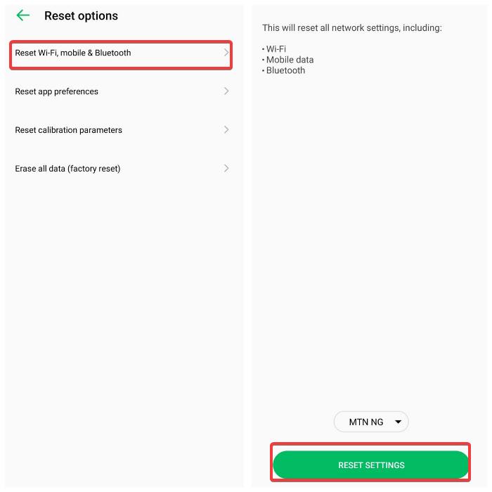3。今すぐクリックしてくださいWi-Fi、Mobile、Bluetoothをリセットします。