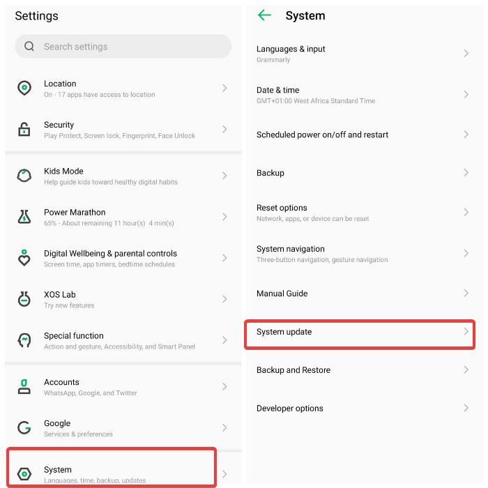 1。開ける設定お使いの携帯電話で選択しますシステム。