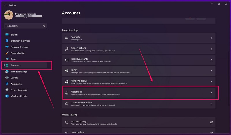 ご覧のとおり、Windowsにログインするために現在使用している現在のMicrosoftアカウントに関する小さな問題は、メモ帳のようなシステムアプリが誤動作を引き起こす可能性があります。したがって、Windows 11でローカルユーザーアカウントを作成するには、次の手順に従ってください。