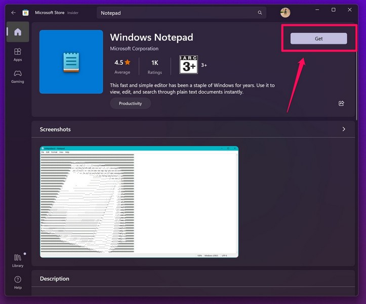 リセットのトリックが機能せず、Windows 11のラップトップまたはPCでメモ帳の問題が機能しないことにまだ固執している場合、次のオプションはアプリケーションを再インストールすることです。 Microsoft Storeの導入後、MicrosoftはNotepadアプリを含むレガシーアプリのいくつかをデジタルマーケットプレイスに追加しました。