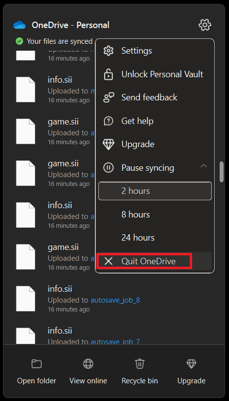 OneDriveアプリケーションを再起動すると、すべてのプロセスを効果的に閉じて新たに開始し、OneDriveサーバーに再接続してファイルの同期を再開できます。さらに、再起動すると一時的なデータがクリアされ、インターネット接続をリセットし、同期プロセスを妨げる可能性のある小さなグリッチを解決する場合があります。