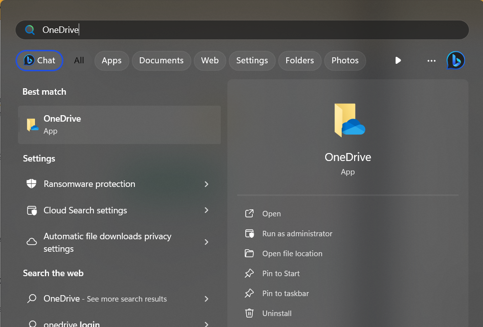 7。タイプonedrive検索バーで、キーボードのEnterキーを押して再び開きます。