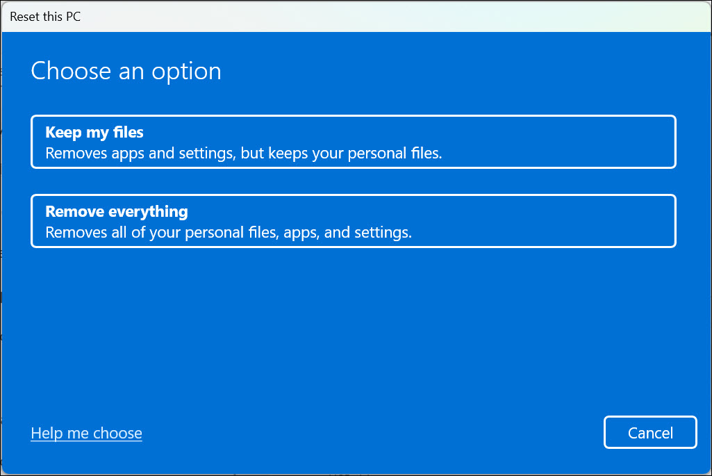 8。画面上の指示に従って、Windows 11を正常にリセットします。