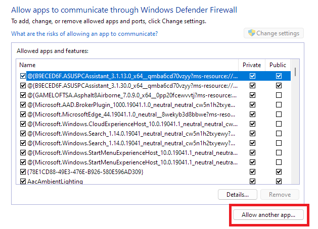 5。次に、をクリックします別のアプリを許可しますオプション。