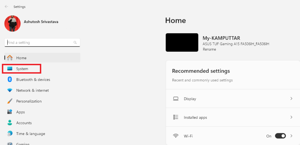2。クリックしてくださいシステム左パネルからシステム設定を開くまで。
