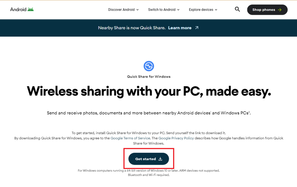 6。ここをクリックGoogleからのQuick Shareのダウンロードページを開くには。