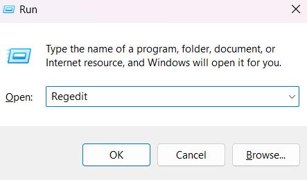 Windows + Rキーの組み合わせを押して、[実行]ダイアログボックスを開きます。 「regedit」と入力し、Enterを押してレジストリエディターアプリを開きます。