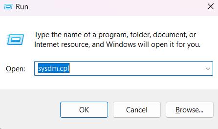 Windows + Rキーの組み合わせを押して、[実行]ダイアログボックスを開きます。テキストボックスに「sysdm.cpl」と入力し、Enterを押してシステムプロパティウィンドウを開きます。