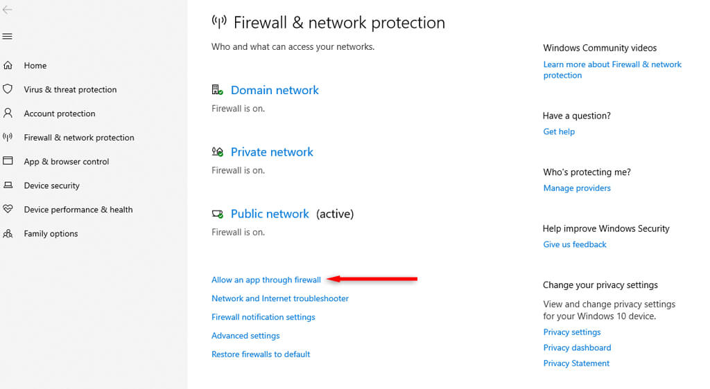 - 選択しますWindows安全次に、押しますファイアウォール&ネットワーク保護。