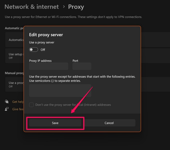 2。Windows11 PCまたはラップトップでプロキシサーバーを無効にします