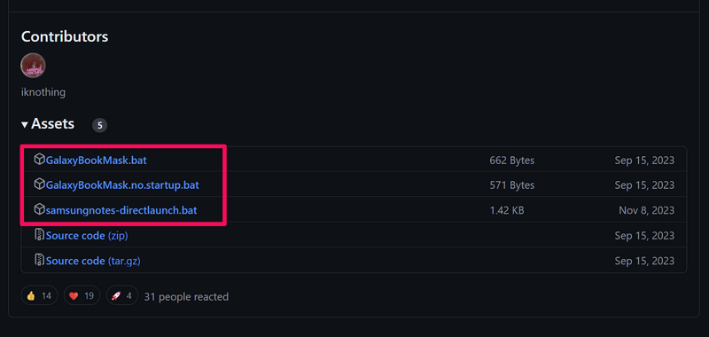 2。これで、GitHubページには、3種類のGalaxy Book Maskモジュールのダウンロードリンクがあります - 標準、スタートアップはありません、 そして直接発売。