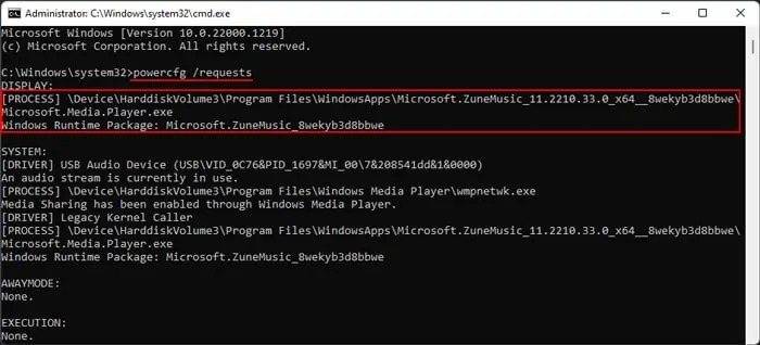 3。入力またはコピーパストPowerCFG /リクエストコマンドプロンプトアプリでレポートを生成します。