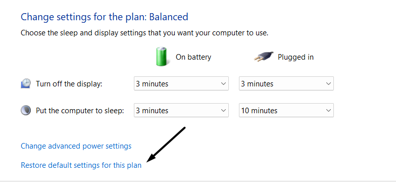 4。クリックこの計画のデフォルト設定を復元しますそして、をクリックしますはいそれらを復元するボタン。