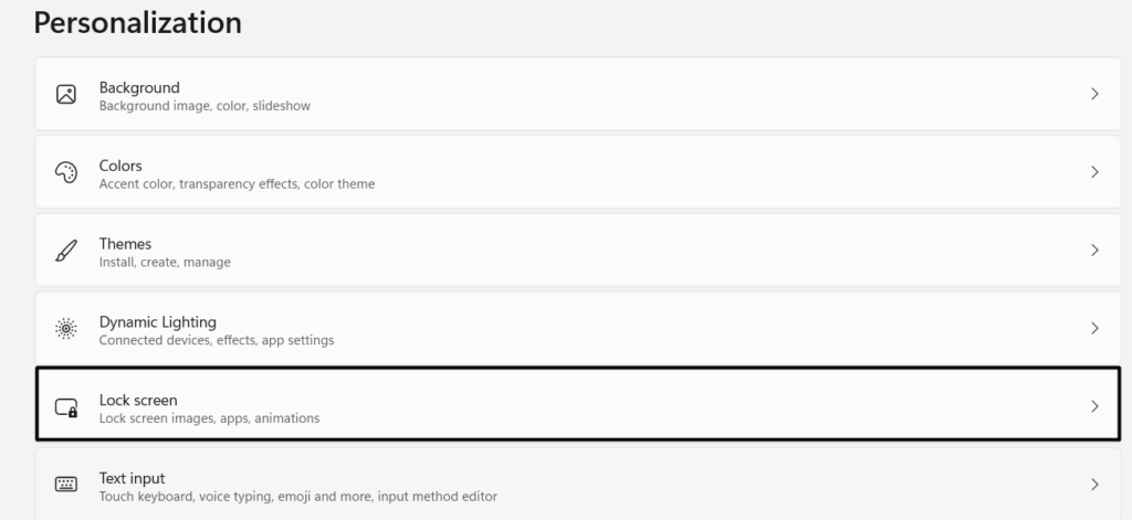 2。でパーソナライズウィンドウ、選択します画面をロックしますオプション、次にスクリーンセーバー。