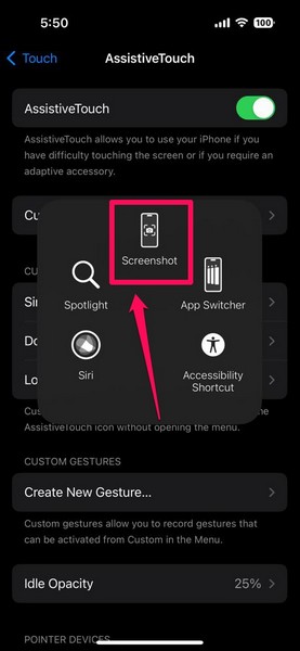 8。を見つけますスクリーンショットオプションそしてタップして選択します。