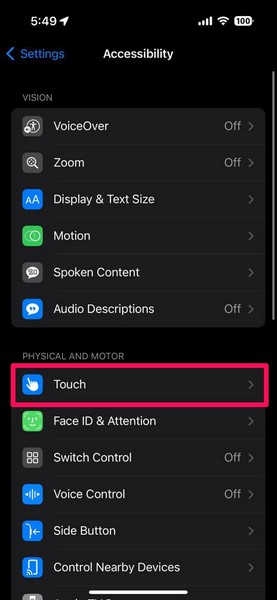 3。の下物理的およびモーターセクション、タップします触るオプション。