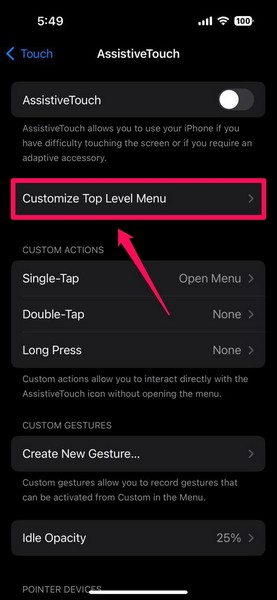 5。次の画面で、タップしますトップレベルのメニューをカスタマイズしますオプション。