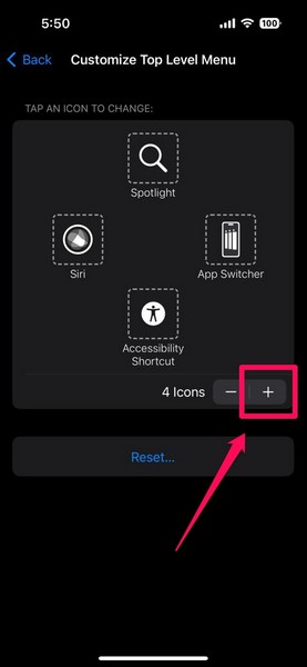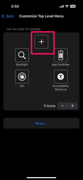 6。タップします+次のページのボタンは、新しいボタンを追加します。既存のボタンのいずれかをタップして、機能を置き換えることもできます。