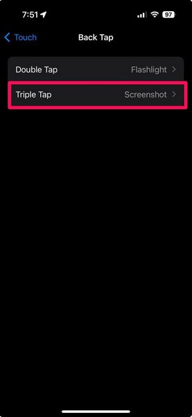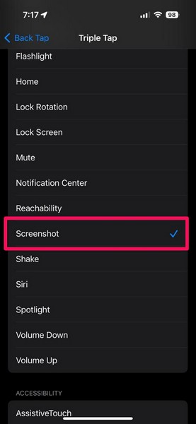 7。この後、スクリーンショット機能は、選択したバックタップジェスチャーに割り当てられます。このデモでは、トリプルタップジェスチャーに割り当てました。