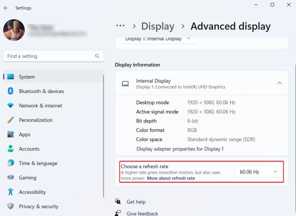 ステップ5 - をクリックしますリフレッシュレートを選択してくださいドロップダウンと選択60 Hz