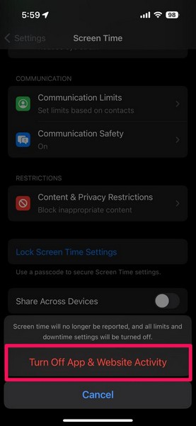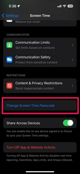 5。これにより、iPhoneで画面時間が無効になります。