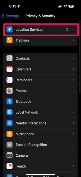 3。タップしますロケーションサービス上部のオプション。