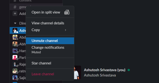 いくつかの特定のチャネルまたはDMで通知の問題に直面している場合、誤ってミュートした可能性があります。 Slackでは、灰色のテキスト色で人/チャンネルの名前が表示されている場合、それはそれらがミュートにあることを意味します。