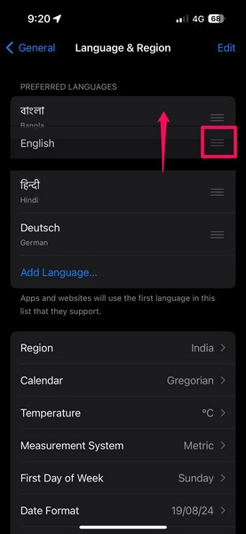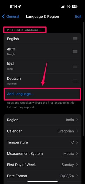 4。ここで、タップします言語を追加します下のボタン優先言語セクション。