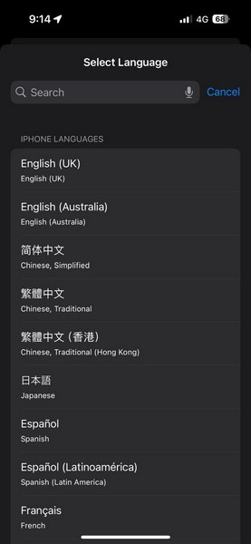 5。今、このリストの任意の言語をタップします(できれば英語ベースのオプション)iPhoneに追加する。