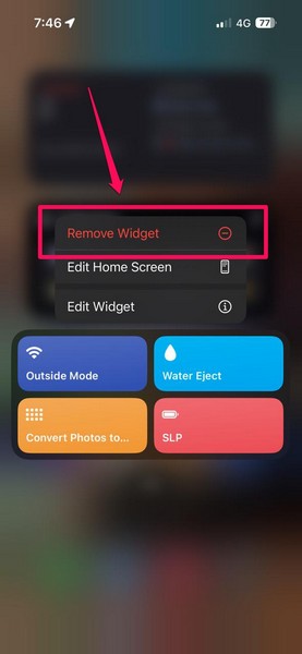 3。次のコンテキストメニューで、をタップしますウィジェットを削除しますオプション。