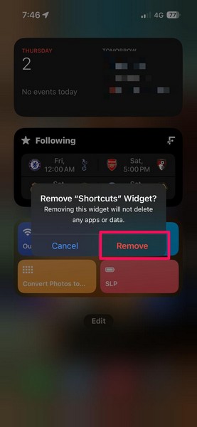 iPhoneで機能していないSpotlight検索の解決に頻繁に機能する珍しい修正の1つは、ショートカットウィジェットの削除です。したがって、ショートカットアプリを使用してウィジェットをiPhoneホーム画面に追加している場合は、削除して、iOSデバイスで機能していないSpotlight検索の問題が修正されるかどうかを確認できます。