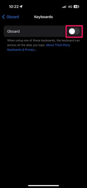GBOARDのようなサードパーティのキーボードアプリケーションは、iPhoneの問題が機能しないSpotlight検索を引き起こす可能性があります。したがって、iOSデバイスでこのようなキーボードアプリを使用している場合は、デバイスでそれを無効にして、上記の問題を解決するかどうかを確認してみてください。