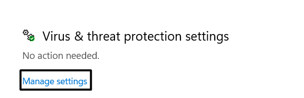 2。次の画面で、 選ぶウイルスと脅威の保護クリックします設定を管理しますオプション。