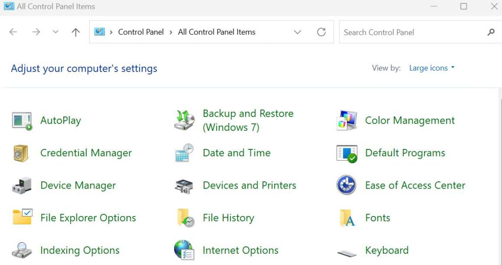 ステップ2:をクリックしますベストマッチ結果とコントロールパネルウィンドウが開きます。