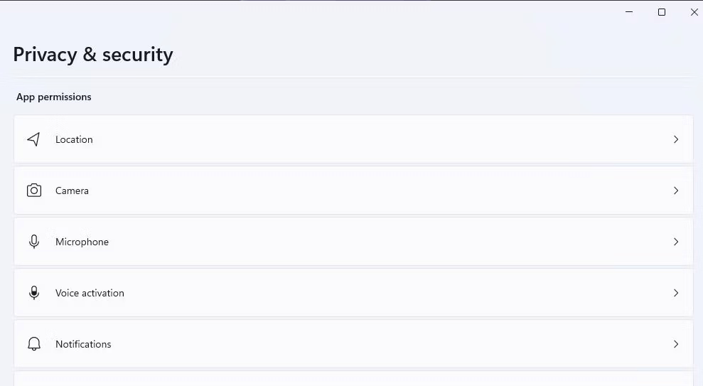 ステップ3:これらのアプリ許可設定にアクセスするには、マイクを選択します。