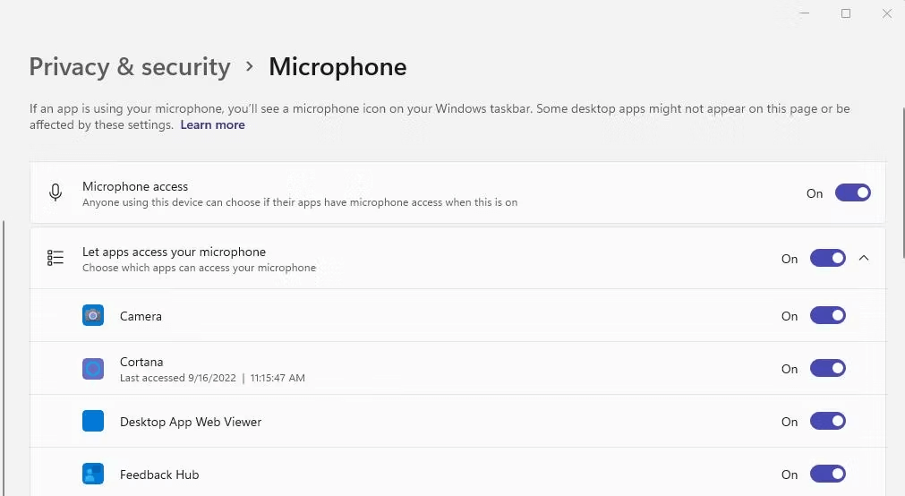 ステップ4:マイクアクセスのオプションがオフの場合は、有効にしてください。